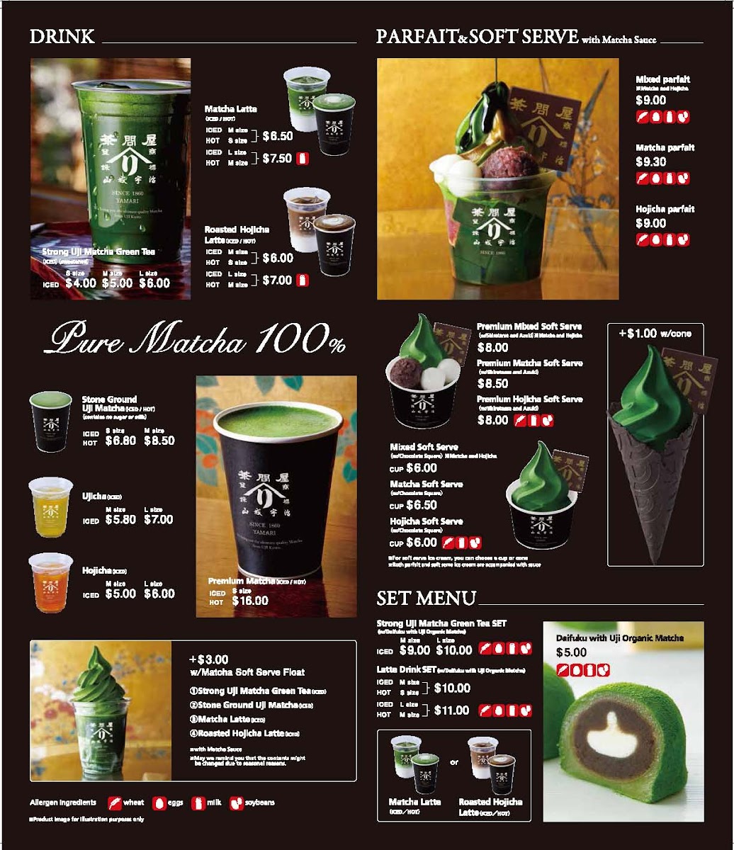 A visit to Yamari wouldn't be complete without indulging in their divine desserts. The Mixed Parfait ($9.50) combines the rich flavors of matcha and hojicha soft serve, enhanced by matcha jelly, shiratama, Hokkaido azuki beans, matcha syrup, and a chocolate square. It’s a treat for both the eyes and the taste buds, offering layers of texture and taste to savor. For matcha lovers, the Matcha Parfait ($9.75) showcases their luscious matcha in a delightful mix that’s both refreshing and satisfying.